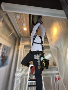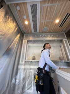 厨房内を汚さないよう、周囲をしっかりと養生(保護)します。