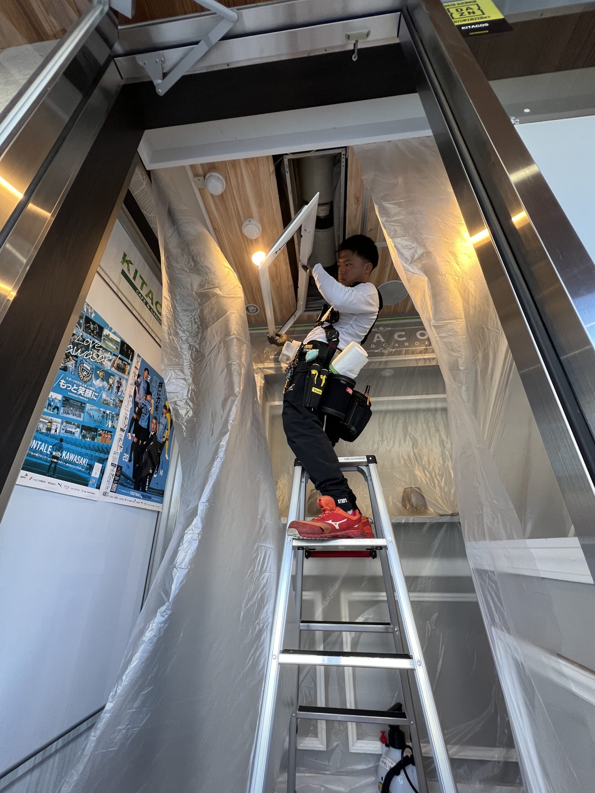 機材の搬入・養生も丁寧に行いますので、
